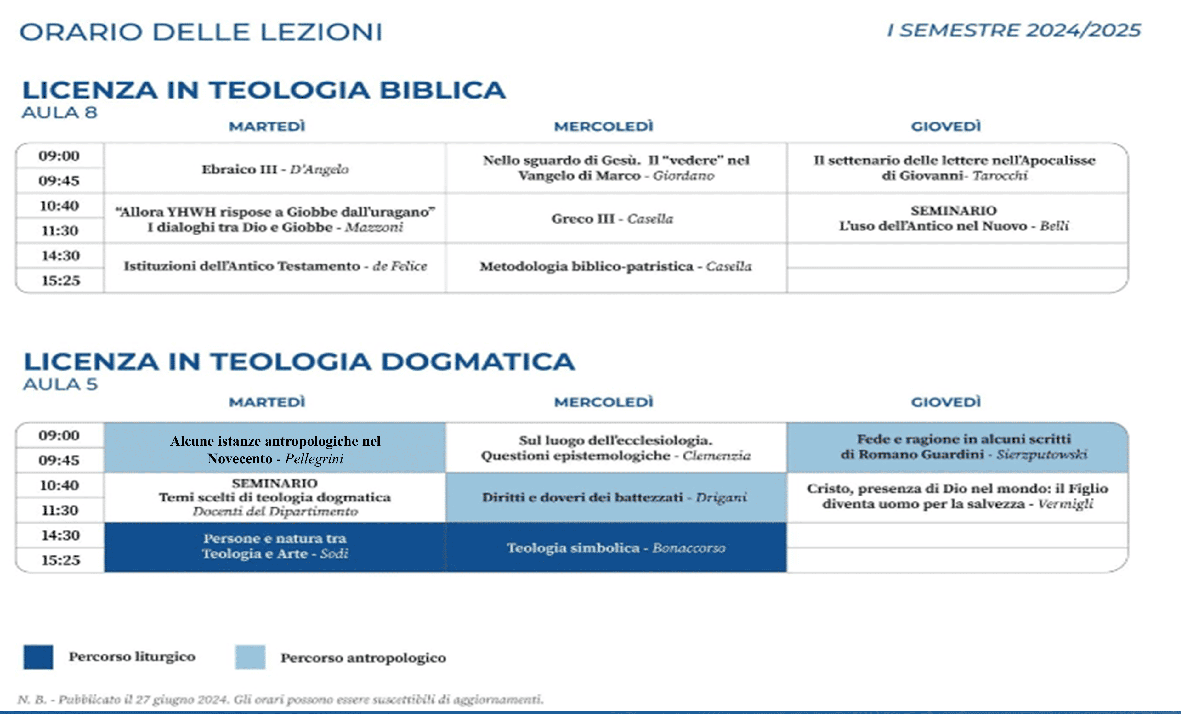 - Le lezioni si tengono nella sede della Facoltà.