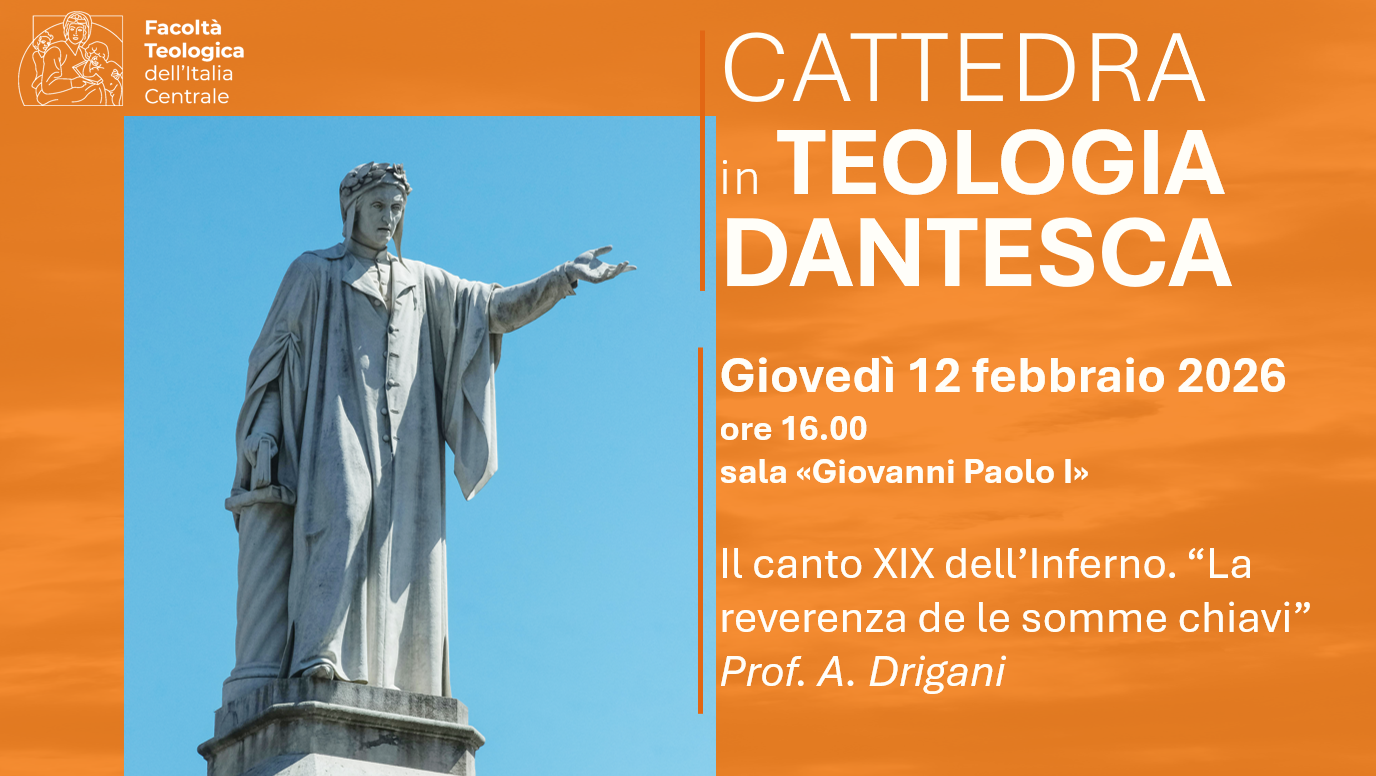 28 Gennaio 2026Seconda lezione della Cattedra in Teologia Dantesca Sono ancora aperte le iscrizioni alla seconda lezione della Cattedra in Teologia Dantesca. Cliccate sull'immagine per informazioni e iscrizione.
